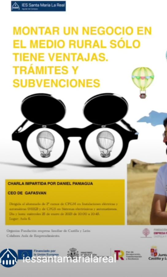 El alumnado de segundo curso de los CFGS en Sistemas electrónicos y automatismos y en Administración y Finanzas, y de los CFGM en Instalaciones eléctricas y automáticas y en Gestión administrativa han participado en la interesante charla de Daniel Paniagua, que ha desarrollado un proyecto innovador en zonas rurales.